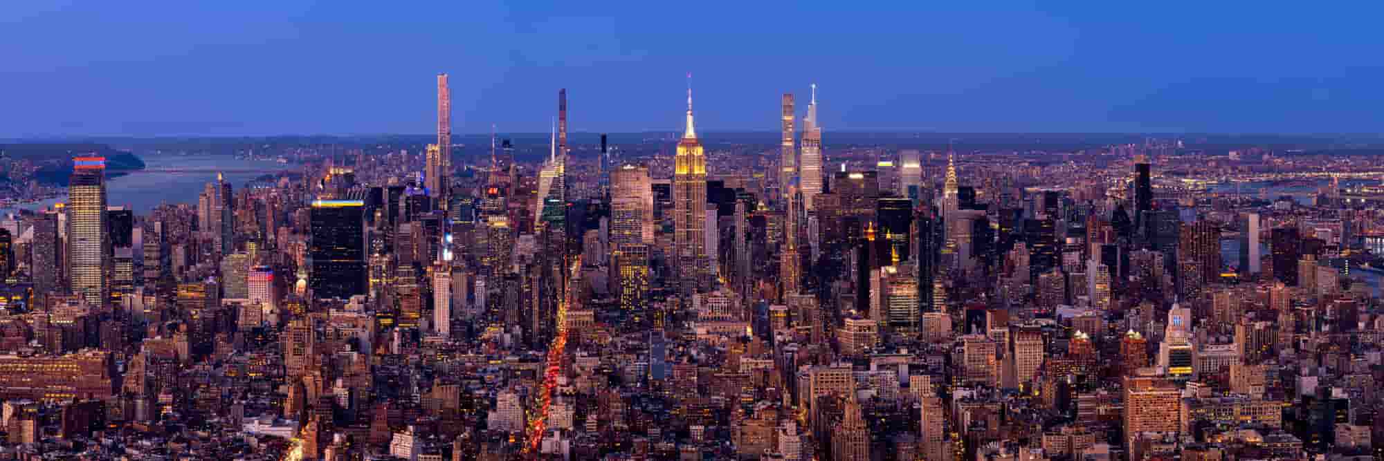 An iconic view looking back over Manhattan from The One World Centre