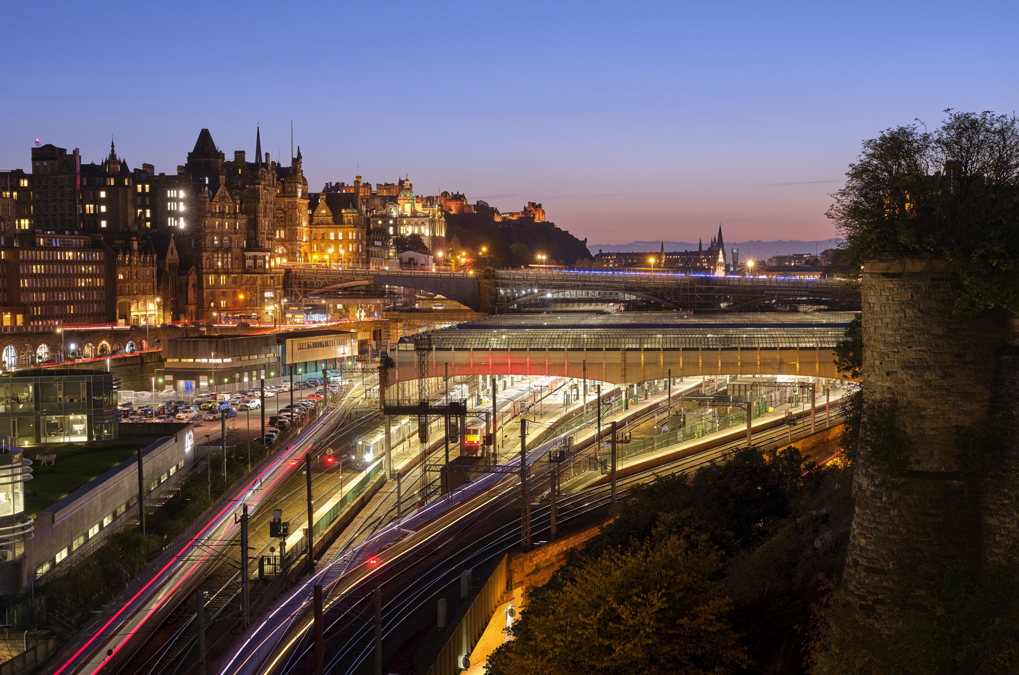 Edinburgh Castle at dusk from St. Cuthbert's Kirkyard